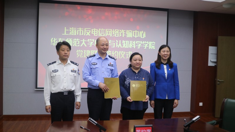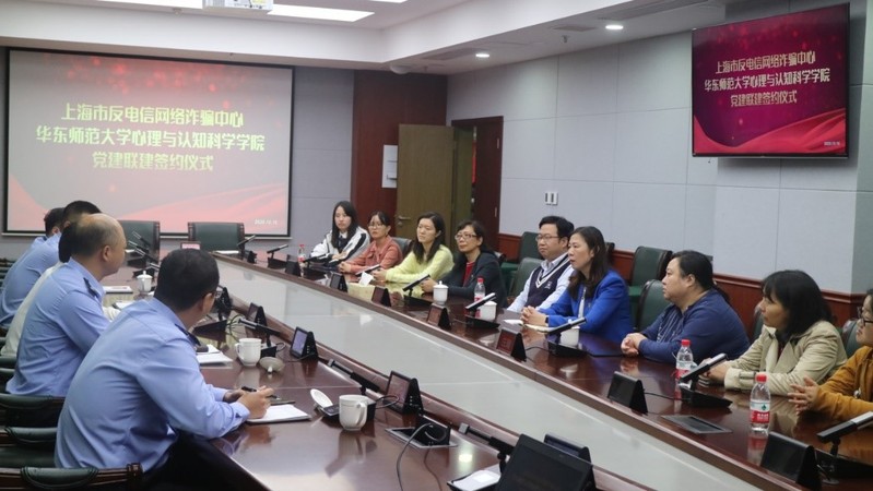 10月16日下午,华东师大437必赢会员中心与上海市反电信网络诈骗中心举行党建联建签约仪式。上海市公安局刑侦总队副总队长姜伟良、九支队政委钱世平、文保分局刑侦大队副大队长徐凤伟及必赢党委书记方媛、党委副书记兼副院长庄瑜、党委委员孟慧、刘晓陵、教师代表李林及辅导员、学生党支部书记参加了签约仪式。