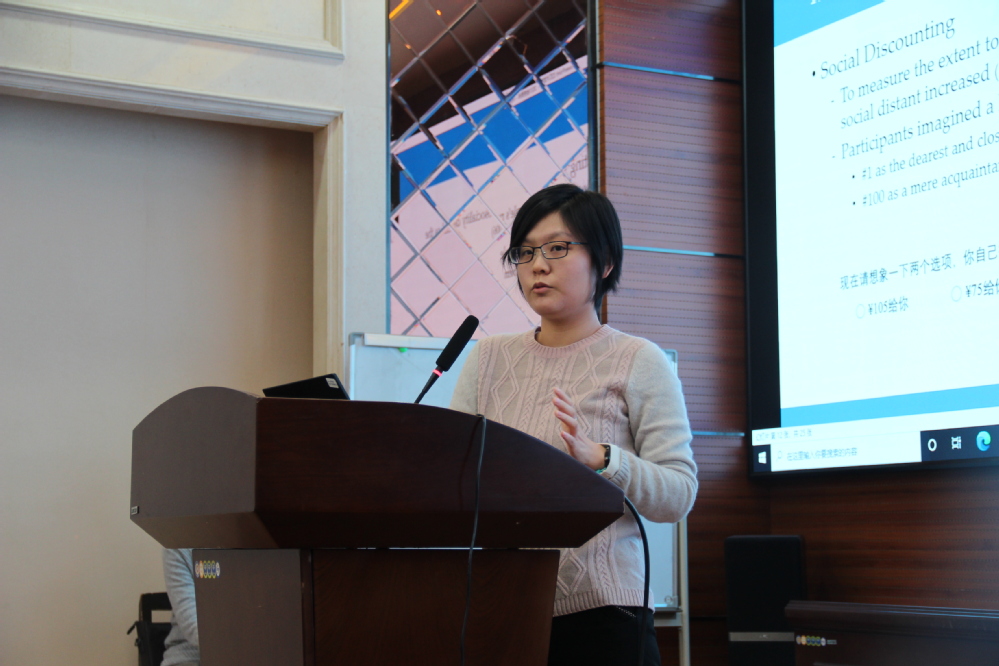 陆静怡副教授作了题为《拒绝为何这么难?》的报告,首先介绍了人的基本动机及动机性推理,然后通过一系列研究检验了“出于避免消极结果的动机,拒绝者会高估被拒绝者对自己的负面态度和行为”这一效应,揭示了该预测偏差在拒绝他人,并且在他人有可能施加报复的情况下出现,说明避免消极结果可能是引发该预测偏差的机制。