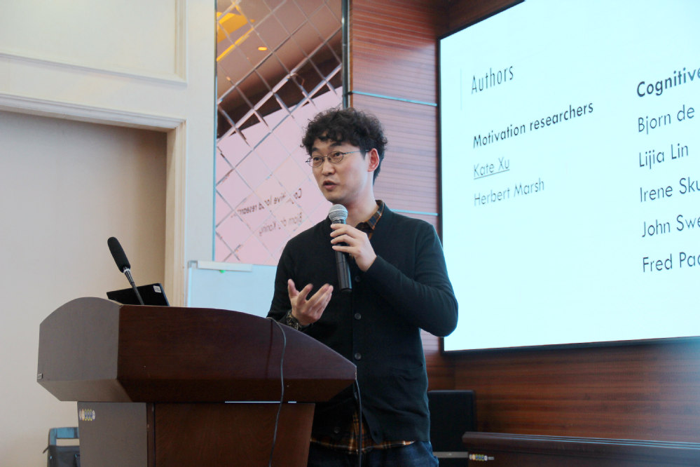 林立甲副教授作了题为《动机理论和认知负荷理论相整合的实证研究》的报告,介绍了近期发表的一项实验研究。林立甲副教授首先介绍了认知负荷理论以及动机理论中的成长型思维概念和成就目标理论,然后报告了实验研究的过程和结果,发现通过阅读材料引发学生的成长型思维能够降低学生的内在和外在认知负荷,提高掌握目标和任务表现,最后分享了在作者数量较多的情况下开展合作研究和文章写作发表的经验。