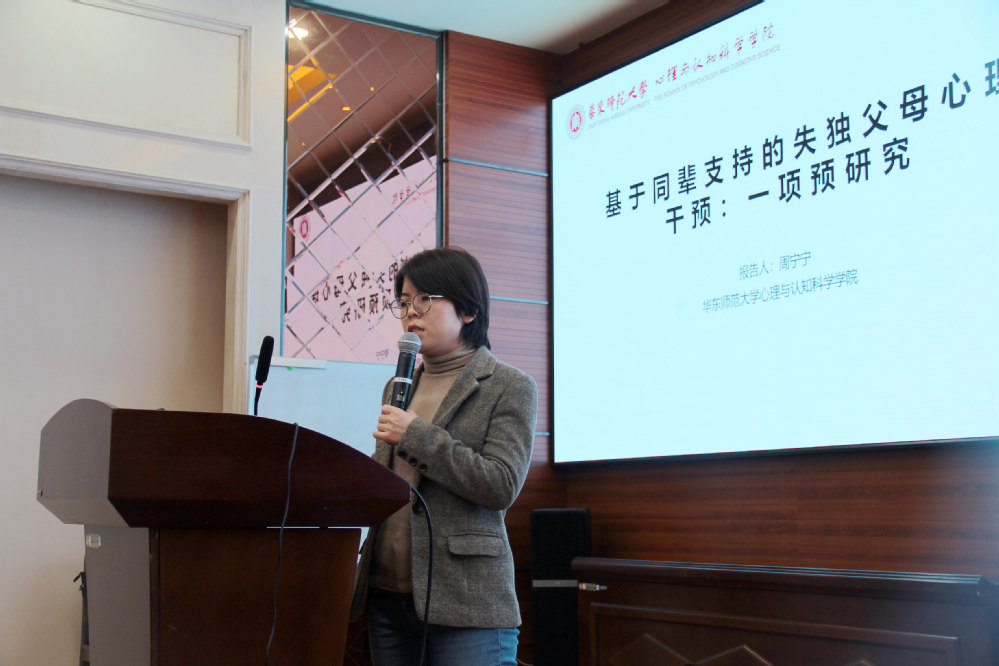 周宁宁博士的报告题目为《基于同辈支持的失独父母心理干预:一项预研究》。报告介绍了同辈支持的定义、作用,同辈支持服务模式的连续谱和中国丧亲群体同辈支持服务模式研究,以及失独父母同命人支持的形式、功能及本土化特点和基于同辈支持的失独父母干预方案的开发、执行与评估。