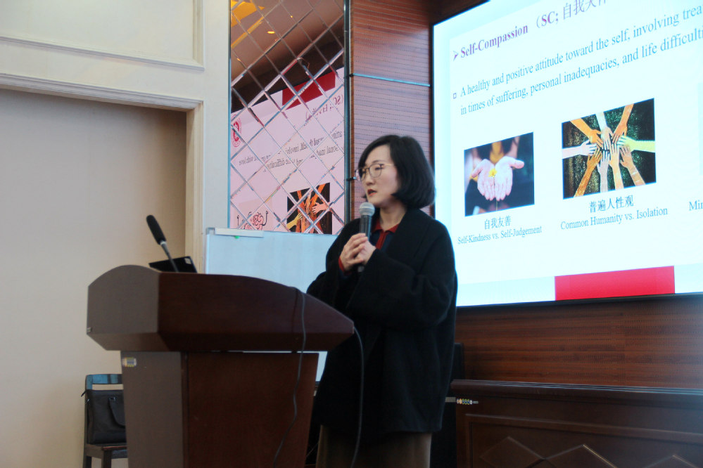 杨莹博士作了题为《自我关怀对感恩和亲社会行为的促进作用》的报告,介绍了近期发表的一项采用三点纵向设计的研究。杨莹博士首先介绍了自我关怀的概念,对自我关怀与自尊、自我放纵、自我可怜等相关概念进行了区分,然后简要介绍了交叉滞后模型与随机截距交叉滞后模型,报告了使用这两个模型发现的个体间与个体内水平上自我关怀对感恩和亲社会行为的预测作用。