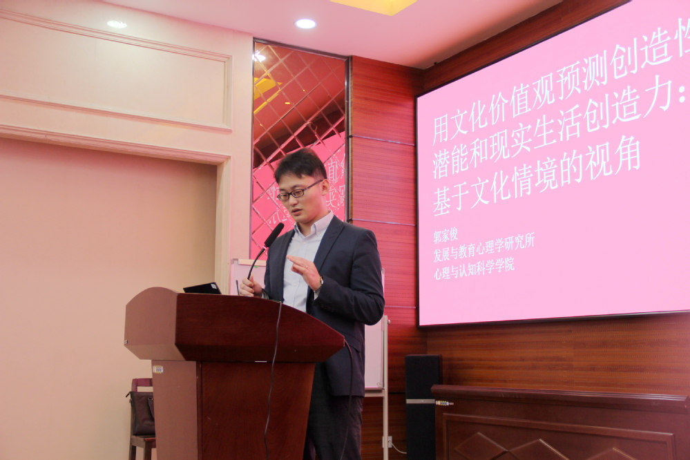 郭家俊博士的报告题目是《用文化价值观预测创造性潜能和现实生活创造力:基于文化情境的视角》。报告介绍了近期发表的一项研究,探讨了个人/集体和水平/垂直这两个文化价值观维度与中美大学生创造性的关系。研究发现美国大学生的水平个人主义和水平集体主义高于中国大学生,垂直个人主义和垂直集体主义低于中国大学生,对两国大学生水平个人主义预测高创造性,垂直集体主义都预测低创造性,而垂直个人主义仅预测了中国大学生的创造性。