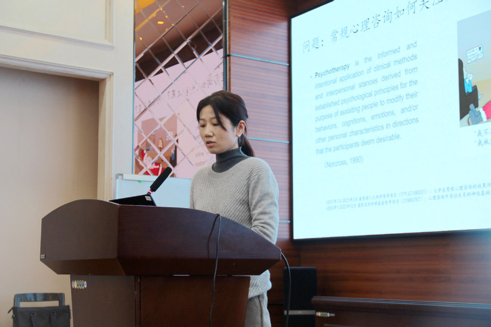 张亚副教授作了题为《常规心理咨询的效果评估与疗效因子研究》的报告,从“常规心理咨询如何关注效果?如何引发改变”的问题引入,介绍了当前常规心理咨询效果研究的现状及国内困境,以及其团队所做的系列研究,包括常规心理咨询效果评估表修订、大学生常规心理咨询效果评估、大学生常规心理咨询的影响因素即疗效因子研究。