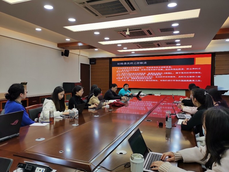 会上,庄瑜梳理了支部纪检委员的主要工作职责,并对各支部纪检委员的工作提出了要求:一是党的作风建设要常态化,要经常对党员进行党规、党法和党纪教育,通过学些典型案例,加强警示教育。二是要严格开展纪律监督,严格检查党员执行《准则》,遵守党的纪律的情况,做到警钟长鸣。三是支部书记与纪检委员要以身作则,共同营造良好的政治纪律氛围。庄瑜还与现场师生分享了政治学系齐卫平教授《严明党的纪律和规矩:全面从严治党治本之策》讲座内容,齐老师指出严明党纪党规是党先进性和纯洁性的保证,是全面从严治党的内在要求,旨在清秀政治生态。我们要提高党纪党规的执行力,维护党纪党规的刚性,深化运用监督执纪“四种形态”。