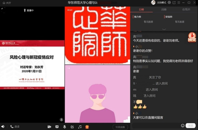 刘永芳教授题为“风险心理与新冠疫情应对”的网络直播