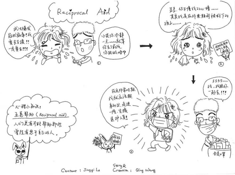 在面向全社会提供疫情防控心理支持的同时,437必赢会员中心的师生们也通过手绘形式,向大家进行心理学知识的科普:系列⑥为大家介绍在疫情中能有效推动人们互帮互助的四个心理学原理。