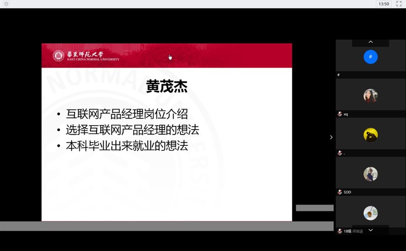 邀请的嘉宾有爱奇艺数据产品经理黄茂杰、美团点评的交互设计师徐诚、和上海建平中学心理健康教师刘玄佛。分享会上不仅有校友们对自己岗位的介绍,职业经历的分享,还设置了问答环节,针对性地回答了同学们的疑问。