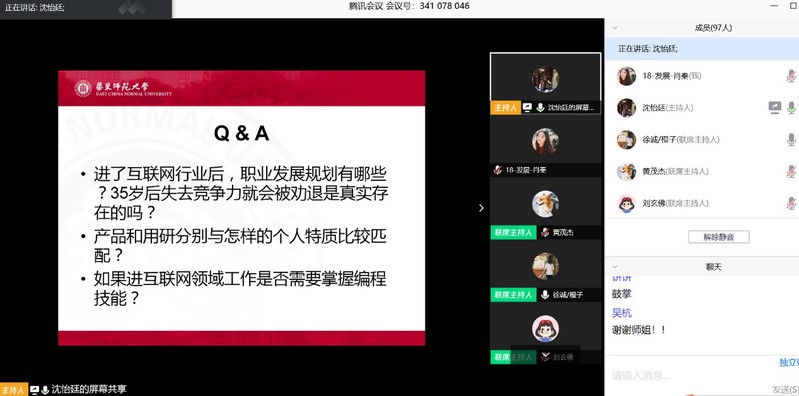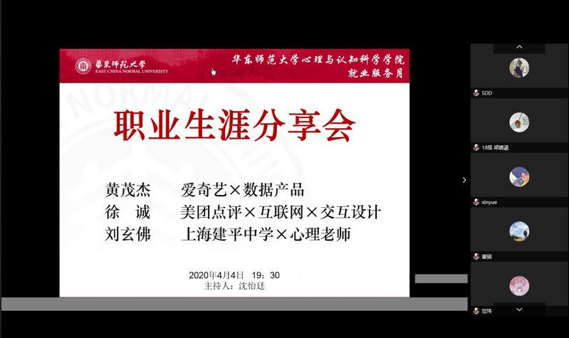 4月4日,437必赢会员中心通过腾讯会议APP,举办了就业服务月的系列活动——“职业生涯分享会”。本次分享会由学院学生事务挂职干部沈怡廷老师主持,邀请学院的往届优秀毕业生作为嘉宾,旨在引导低年级同学思考心理学的就业方向及职业规划,2个多小时的活动, 130余名学生共同参与。