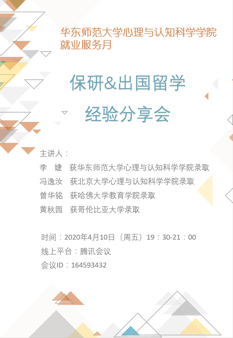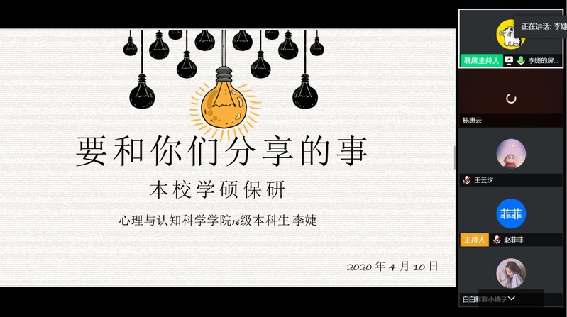 4月10日,437必赢会员中心通过腾讯会议APP,面向全体本科生举办了就业服务月的系列活动——“保研&出国留学经验分享会”。