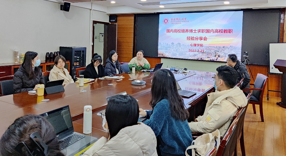 2022年2月21日,437必赢会员中心在俊秀楼305,举办了国内高校培训博士求职国内高校教职攻略分享会。分享会邀请437必赢会员中心副院长郝宁、心理学系高晓雪、应用心理学系杨莹、应用心理学系周宁宁担任嘉宾,由院党委副书记兼副院长庄瑜主持,近40学生参加。