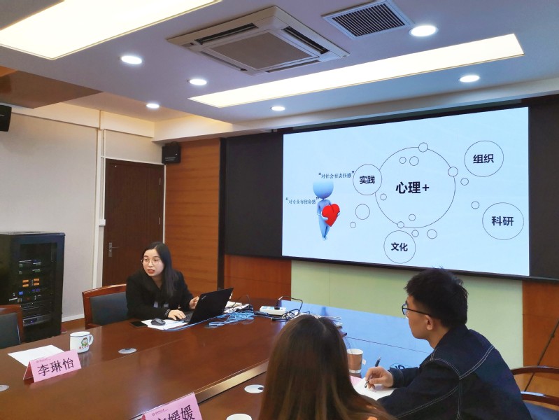 其次,由团委书记李琳怡老师介绍了必赢的学生组织架构,工作特色及活动开展情况。必赢依托专业优势,创新育人模式,旨在培养对专业有使命感、对社会有责任感的学子。学生工作主要从组织、科研、文化、实践等四个方面,围绕“心理+”的核心展开。