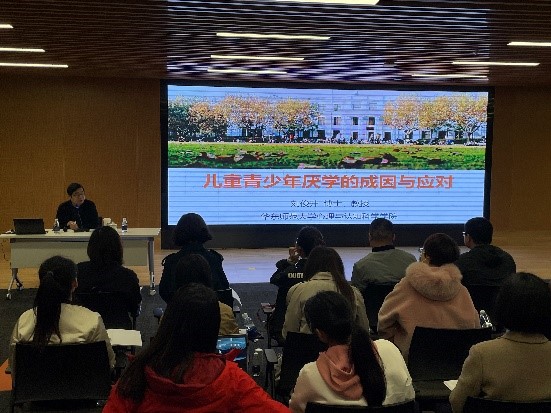 专题报告会中,刘俊升老师从心理学的角度分析学生厌学的原因,以及从家庭、学校的角度提出可能的应对策略,现场教师纷纷表示受益良多。