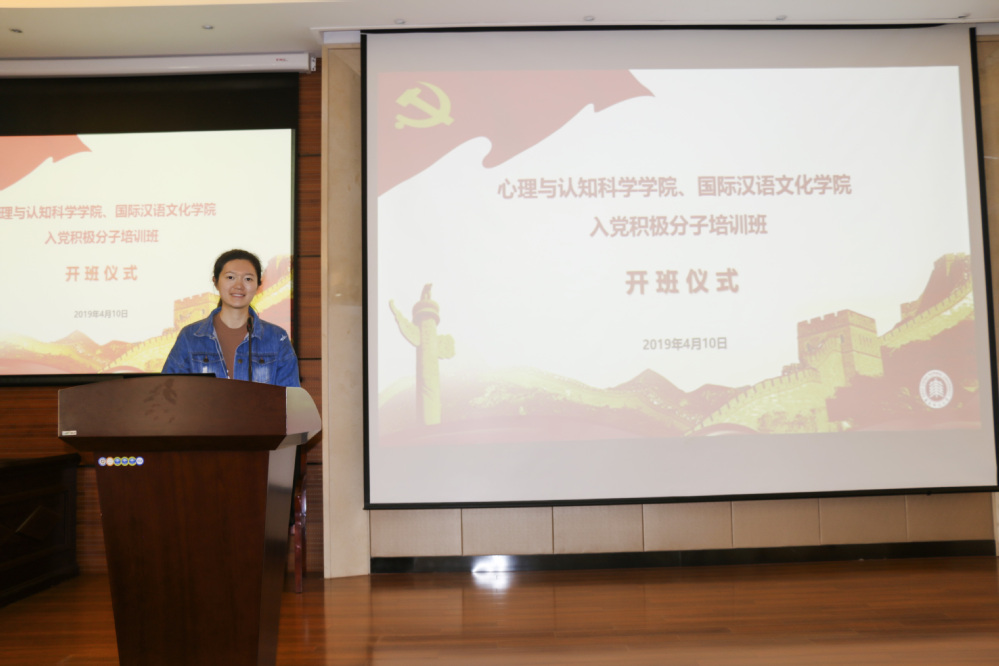 4月10日下午,437必赢会员中心、国际汉语文化学院2019年入党积极分子联合培训班开班仪式暨首次培训讲座在俊秀楼小剧场举行。开班仪式由437必赢会员中心党委秘书赵菲菲主持,437必赢会员中心党委副书记兼副院长庄瑜、国际汉语文化学院本科生党支部书记刘曈、辅导员吴春燕出席开班仪式。