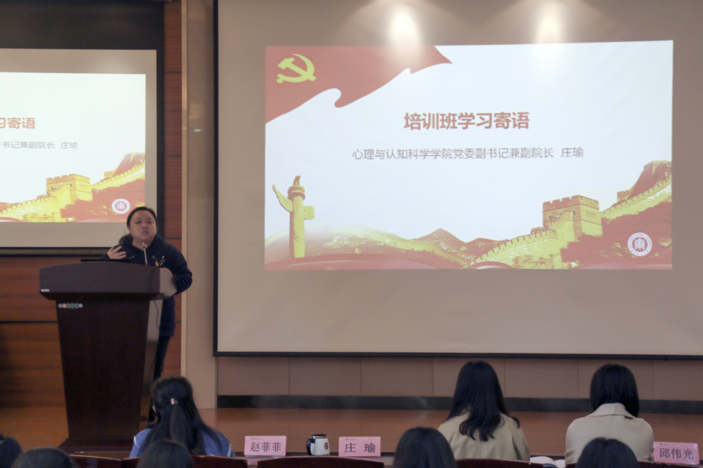 开班仪式上,庄瑜简要介绍了本期入党积极分子培训班的教学目标和教学计划,对在座的学员提出了学习要求,希望大家能够通过培训班加强对党的认识,提升理论水平,并推荐学员们下载“学习强国APP”获取更多线上学习资源。刘瞳介绍了培训班的课程设置和考核条例, 希望大家珍惜学习机会,严格遵守班级管理规定,学有所思,学有所成。
