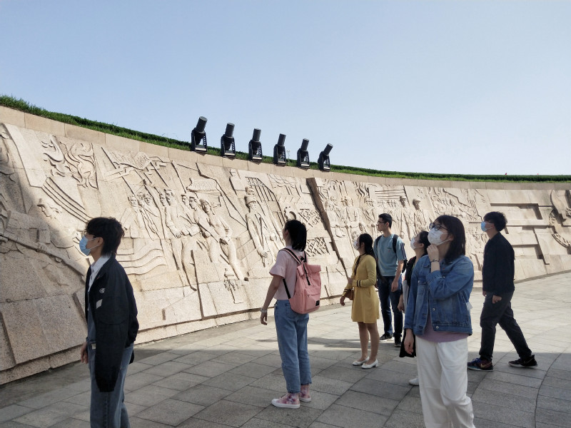 李昕怡(本科生党支部):今天我们参观了人民英雄纪念塔,中间屹立着三根拔地而起的柱子象征着三个时间段的人民英雄伟绩,周围的石壁刻画着著名的历史事件帮助我们追忆先辈的崇高理想和光荣事迹。从鸦片战争中华儿女奋起反抗,到中国共产党的成立、中国人 民从此有了主心骨,再到建国、站起来、富起来、强起来,都阐述着"人民英雄永垂不朽”,他们的爱国主义精神闪闪发光、指引着我们前进的路。马上就是五四青年节了,对于我们青年人,在铭记历史、缅怀先烈的同时,更应该思考我们肩上的责任和使命,积极向先烈学习,不忘初心,奋勇前行!