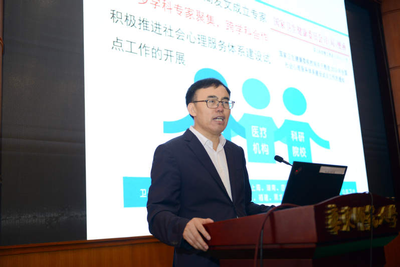 在揭牌仪式结束后的“长三角心理健康高峰论坛”上,陆林院士做了题为《中国社会心理服务体系的现状和未来》的大会报告。他阐述了全球心理精神健康的现状,并分析了我国现有社会心理服务体系的不足,进而提出了中国社会心理服务体系的未来的发展远景。报告指出,在全球疫情肆虐的大背景下,人类的精神心理疾病流行加剧,据2019年全球疾病负担研究显示,全球约有9.7亿人患有精神心理疾病,这个数字超过世界人口的13%。针对这一问题,我国目前正在推进健康中国行动之心理健康促进行动,旨在提升心理健康素养水平,减缓心理疾病上升趋势。陆林院士表示,现有社会心理服务体系仍有许多不足,如精神卫生资源有限,组织领导和政策制度亟待完善,心理危机干预体系薄弱,专业人员数量和服务能力亟须提升,精神科学与其他学科需要交叉融合等问题。对此,陆林院士提出要建立公共精神卫生体系,多学科专家聚集以实现跨学科合作,整合多方资源以提升突发卫生事件下的心理服务,合理配置精神卫生资源等。