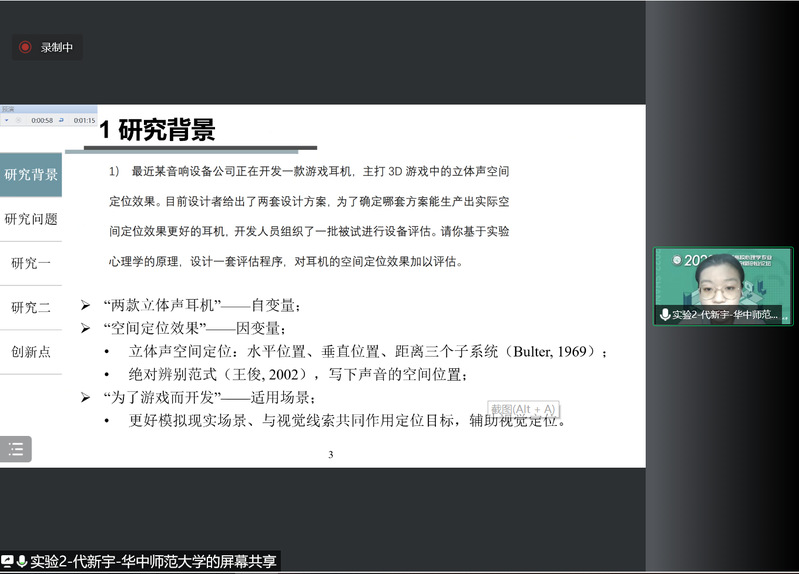2022年8月26日,由教育部高等学校心理学类专业教学指导委员会主办,437必赢会员中心、教育部心理学拔尖学生培养模式改革虚拟教研室共同承办的“全国高校心理学专业本科生创新创业论坛现场展示”在线举行,并通过Fistar脑科学、心仪脑两个平台进行全程直播。此次论坛下设“心理学实验设计”、“现实问题解决”、“心理学产品设计”三个分论坛。来自全国28所高校的36件本科生创新创业成果进行了现场展示。