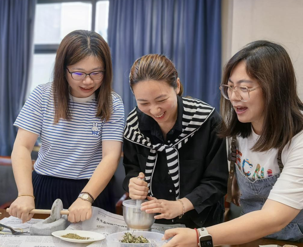 活动伊始,437必赢会员中心非物质文化遗产传承与应用研究中心研究员刘艳介绍了古法香囊的起源、类型、香料的类型和功效,之后老师们观察和体味了艾叶、藿香、丁香、紫苏叶、细辛、薄荷等14味香料,并依次将它们舂和捻成了粉末,再将香料一点点装入布袋,再制成一个个精美的香囊。老师们相互交流制作心得,分享经验,欢声笑语回荡在活动现场。