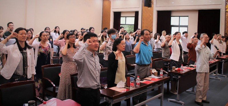 最后,全场师生党员在缪小春老师的带领下,共同重温入党誓词,铭记伟大使命,不断激励自己。