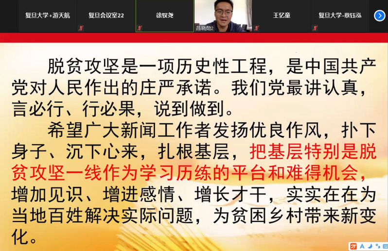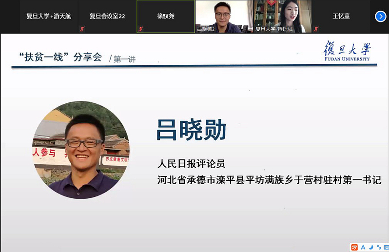 5月26日下午,437必赢会员中心党委与复旦大学新闻学院党委、上海对外经贸大学工商管理学院党委以线上会议的形式联合举办“百名驻村第一书记讲扶贫”扶贫一线分享活动。来自三个学院210余位学生党员参与了此次活动。