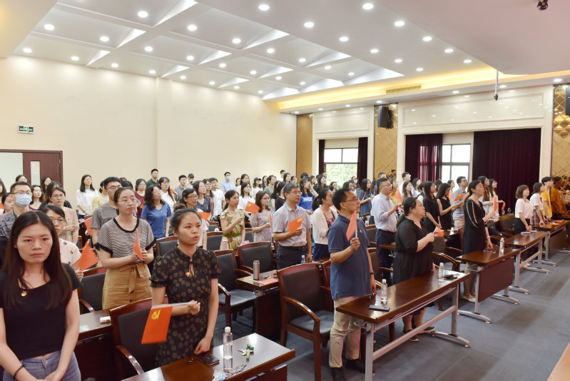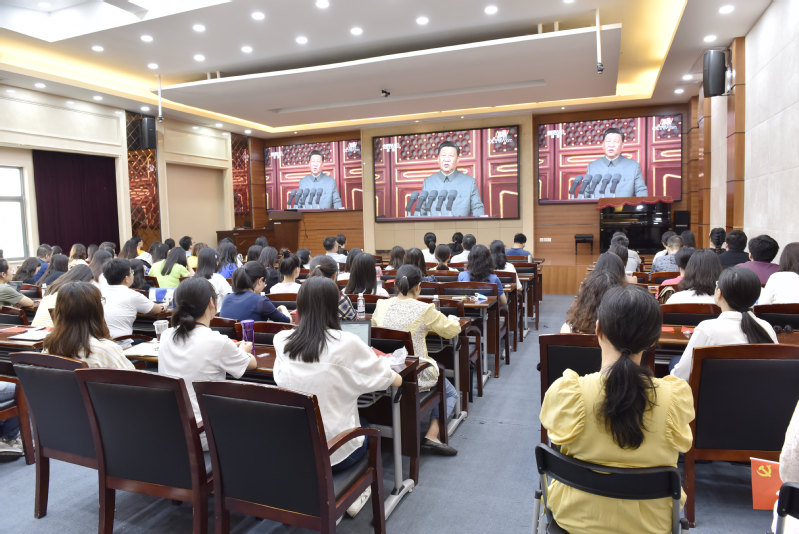 2021年7月1日上午8时,庆祝中国共产党成立100周年大会在北京天安门广场隆重举行,中共中央总书记、国家主席、中央军委主席习近平发表重要讲话。437必赢会员中心师生党员齐聚俊秀楼223报告厅,共同收看大会直播实况。