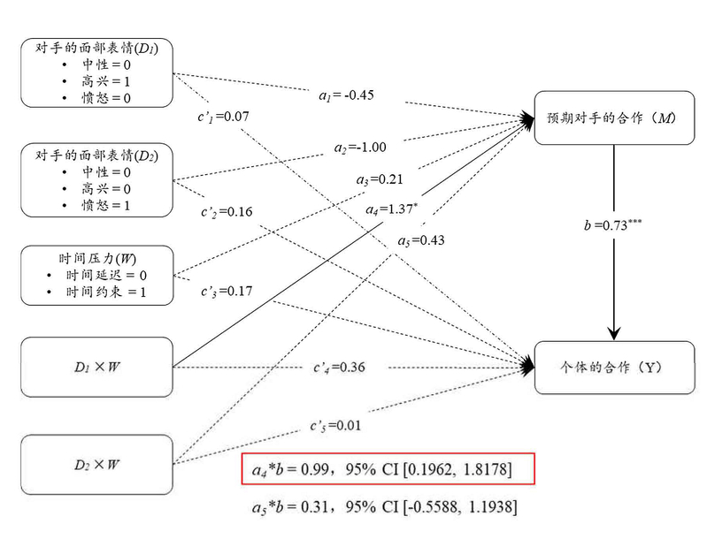 图6 预期的中介作用检验(实验1)