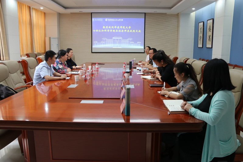 在陕西师范大学,心理学院党委书记李录志出席了交流活动,党委副书记兼副院长董增云主持会议、团委书记张媛媛及专、兼职辅导员也做了工作交流。庄瑜老师就必赢文化育人、实践育人、科创育人、党团建设、就业工作等方面的具体做法交流了经验,并表示希望两校继续深化交流,共同推动心理学人才培养的新局面。