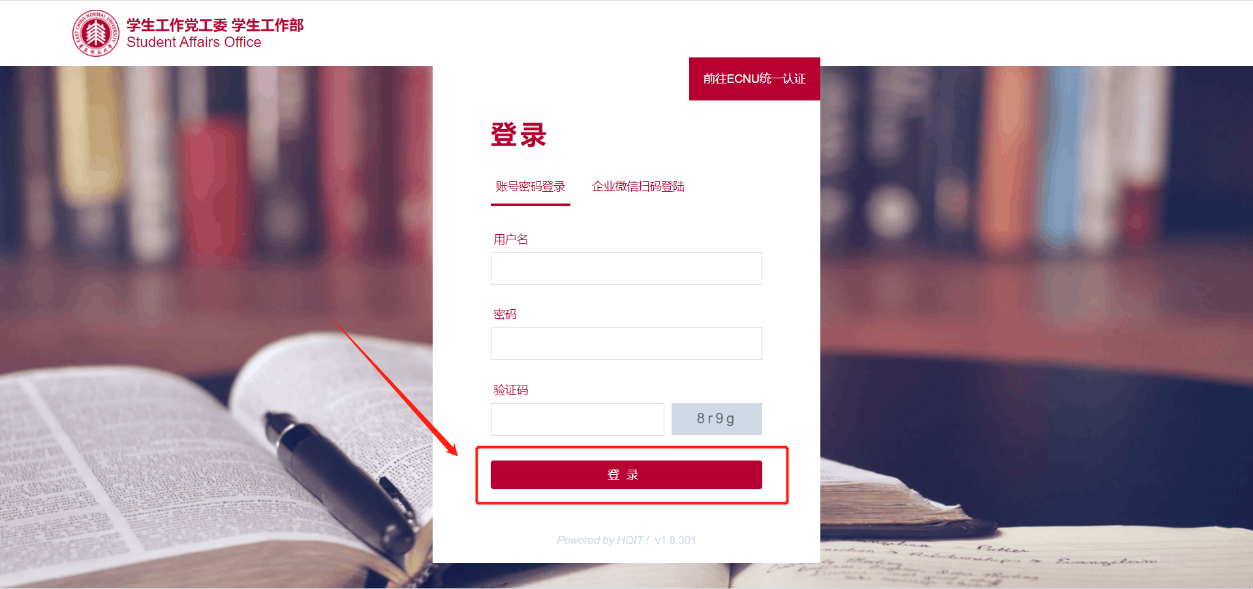 点击“前往ECNU统一认证”(图1.3),填写正确的用户名、密码、验证码后,点击“登录”(图1.4),等待页面跳转至系统首页。