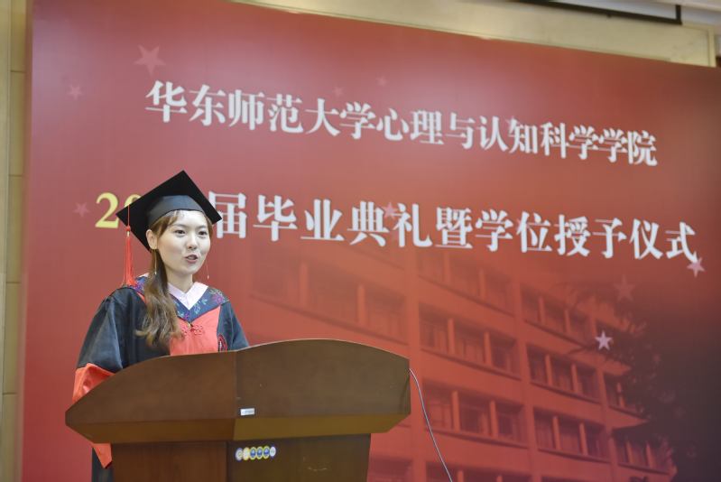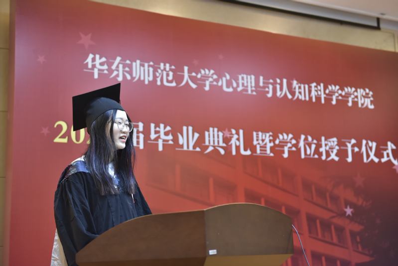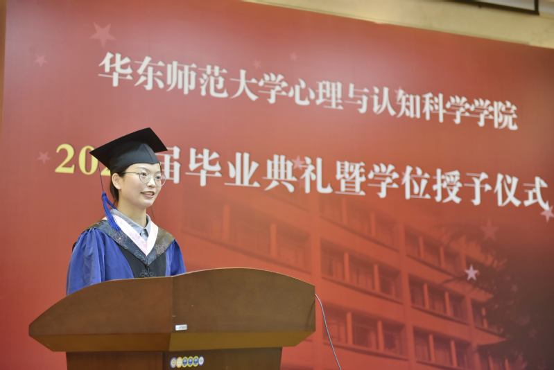 博士生代表、本硕博均就读于必赢的齐芳珠谈到,十一年的学习时光,华东师大见证了自己的改变与坚守,她认为师大赠予了学子们温柔与力量,希望心理学子们能将这份温柔与力量传递下去,无论未来是否从事科研工作,都能不忘初心,求实创造;无论未来是否为人师表,都能俯仰之间,无愧于心。