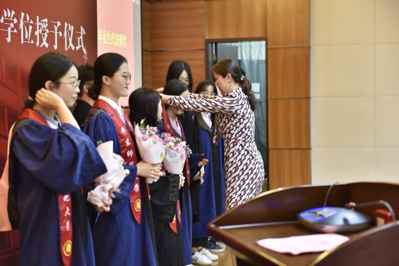庄瑜宣读了市级、校级优秀毕业生和服务西部奖获奖者名单,方媛为获奖学生赠予绶带。