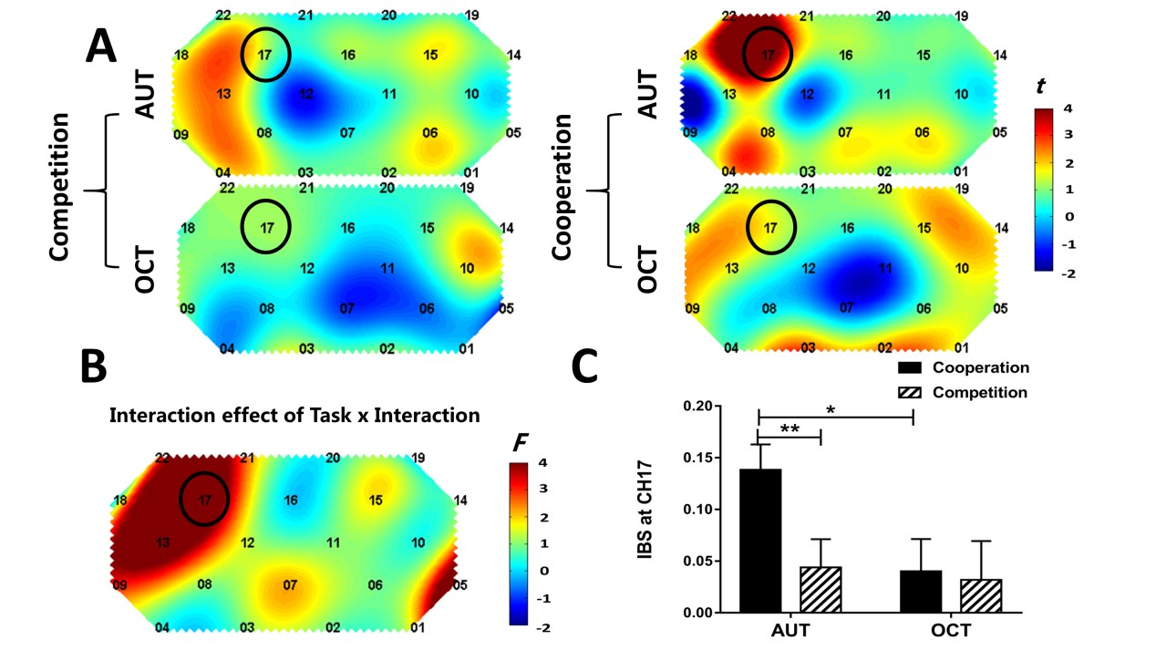 团体创造力(group creativity)指团体成员共同产生新颖的且有适用性的观念、问题解决方法、产品、服务、过程和流程的能力。前人研究表明,只有在团队成员进行深入有效的互动时,团队内部资源得到充分利用,团队的创造潜能才可能被激发(Gilson and Shalley 2004; Hargadon and Bechky 2006; van Knippenberg et al. 2004; Vera and Crossan 2005)。合作与竞争作为两种主要的人际互动模式,其对团队成员间的互动有效性可能产生不同影响,进而影响团队创造力的表现。必赢郝宁教授课题组试图探究不同类型的人际互动模式(合作 vs. 竞争)对团体创造表现的影响及背后的脑-脑间互动神经机制。