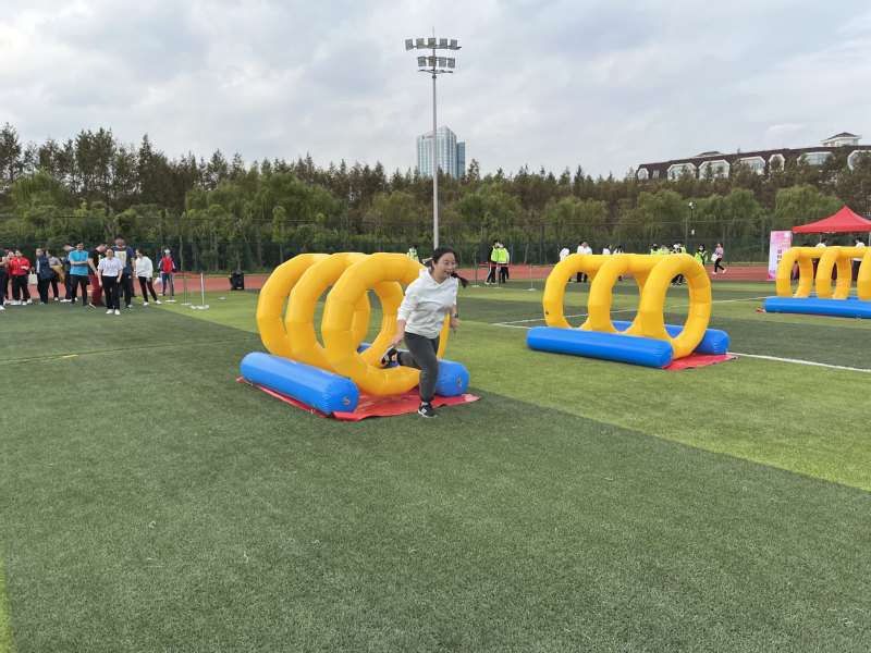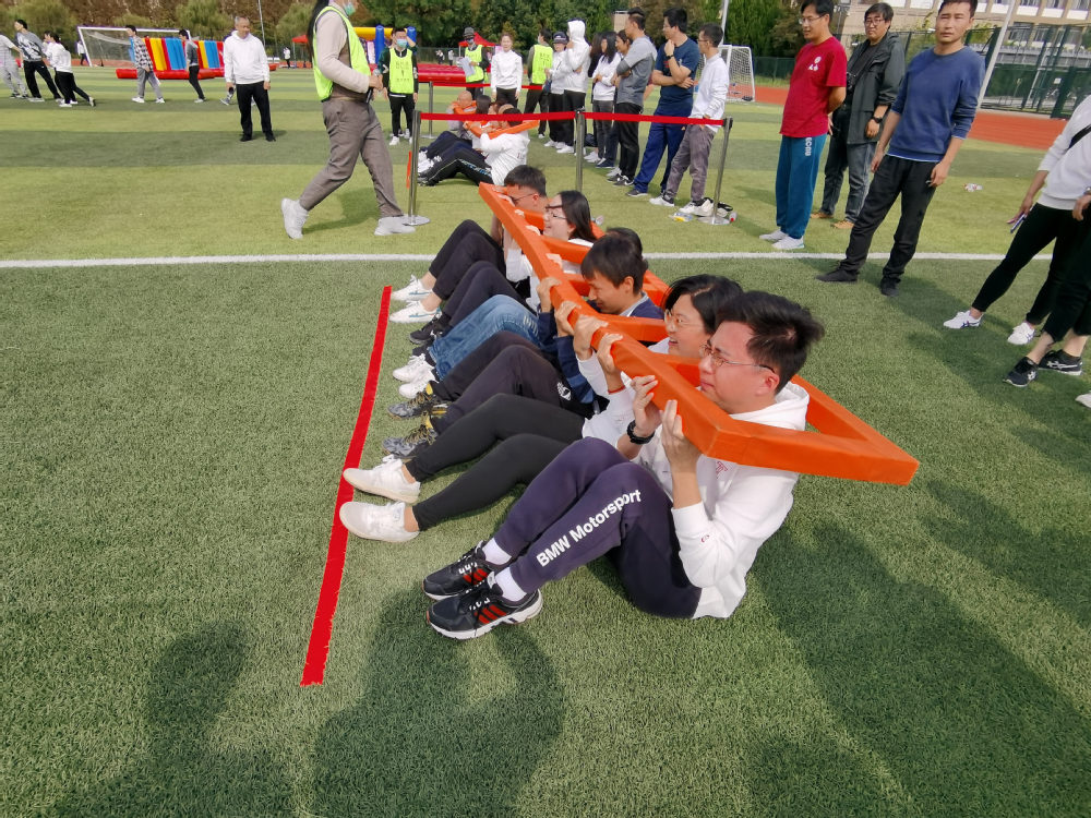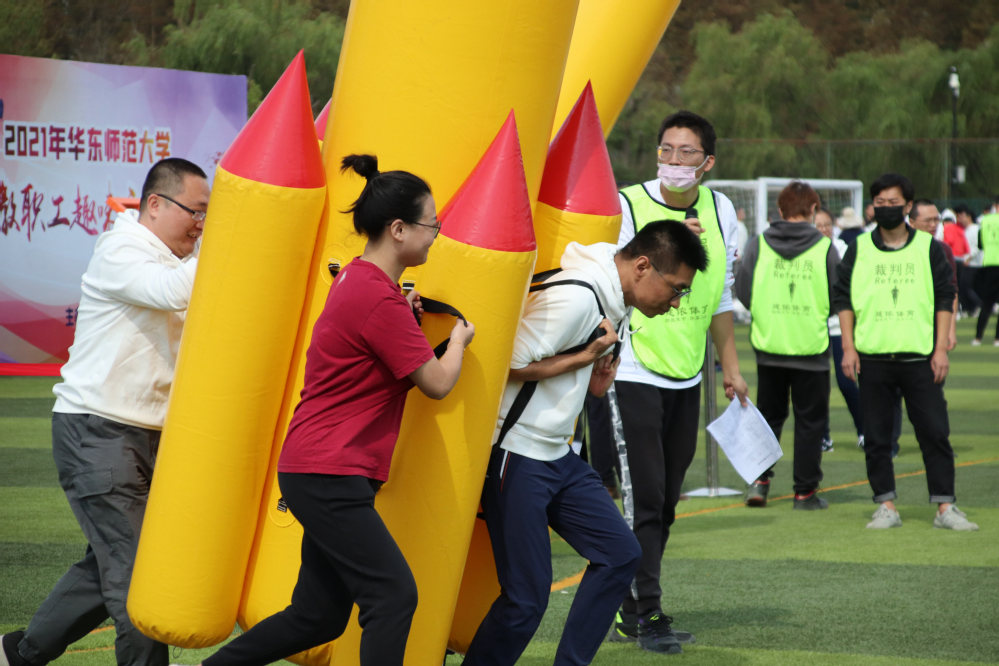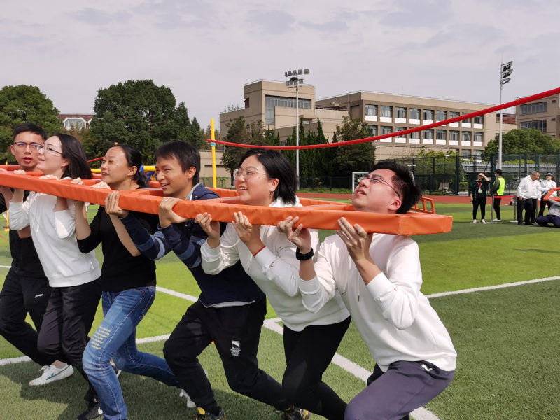 在接下来的教工趣味运动会中,学院教工代表队协同一心、全力拼搏。