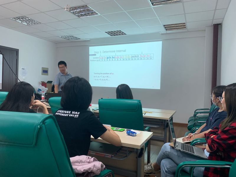 在报告中,王昊博士介绍了他所在实验室关于“统计学习对于早期语言习得的重要性”的最新研究成果。这个研究提出一个关于婴儿统计学习的新的假说,即对韵律感知的能力可以更好的解释婴儿统计学习,并通过实验和建模对这一假说进行了证明,以及进一步提出,韵律感知不仅可以解释当前研究和其他统计学习研究,还可能是言语和听觉其它领域普遍存在的基本机制。王昊博士风趣幽默、旁征博引,大量生动案例不时激起场下阵阵笑声,丰富前沿的研究成果引发参加者的思考和讨论。报告结束后,同学们提出了很多问题和想法,王昊博士与大家进行了热烈的交流。